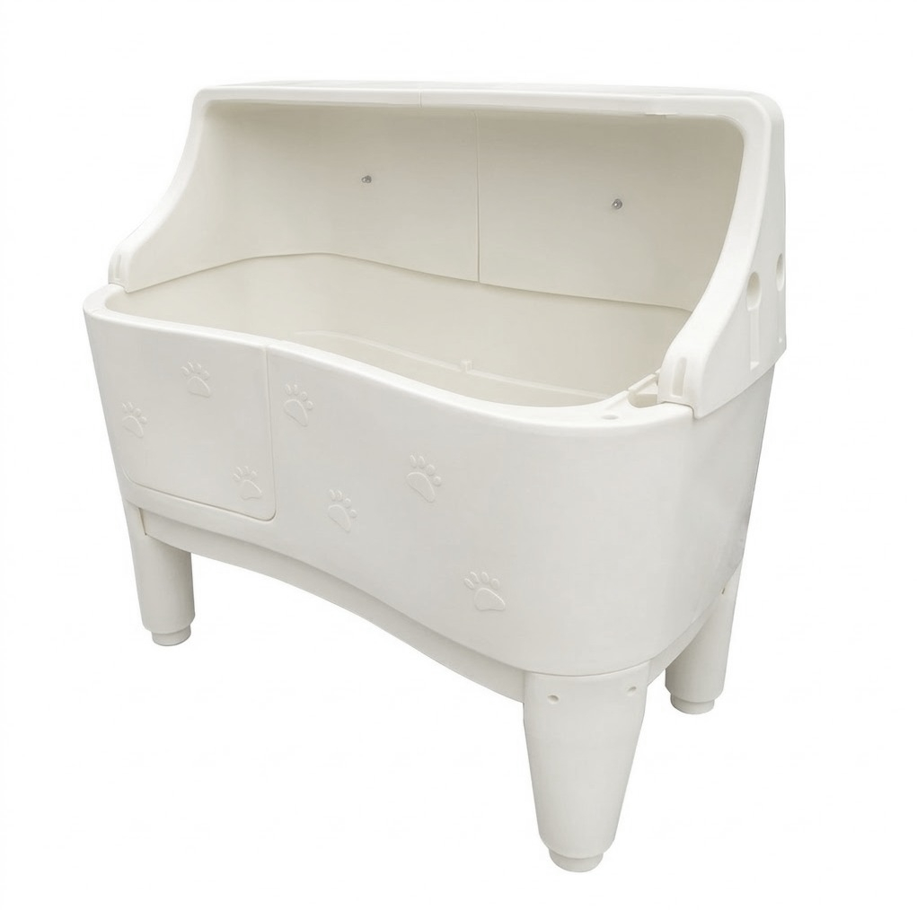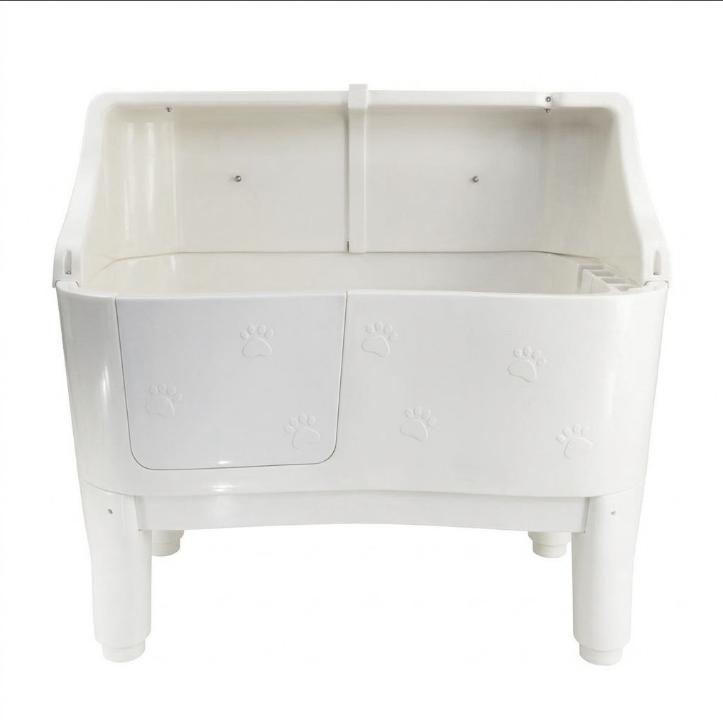 Această cadă profesională pentru câini este realizată din plastic de înaltă calitate, rezistent și ușor de întreținut, fiind ideală pentru utilizare intensivă în clinici veterinare și saloane de grooming.